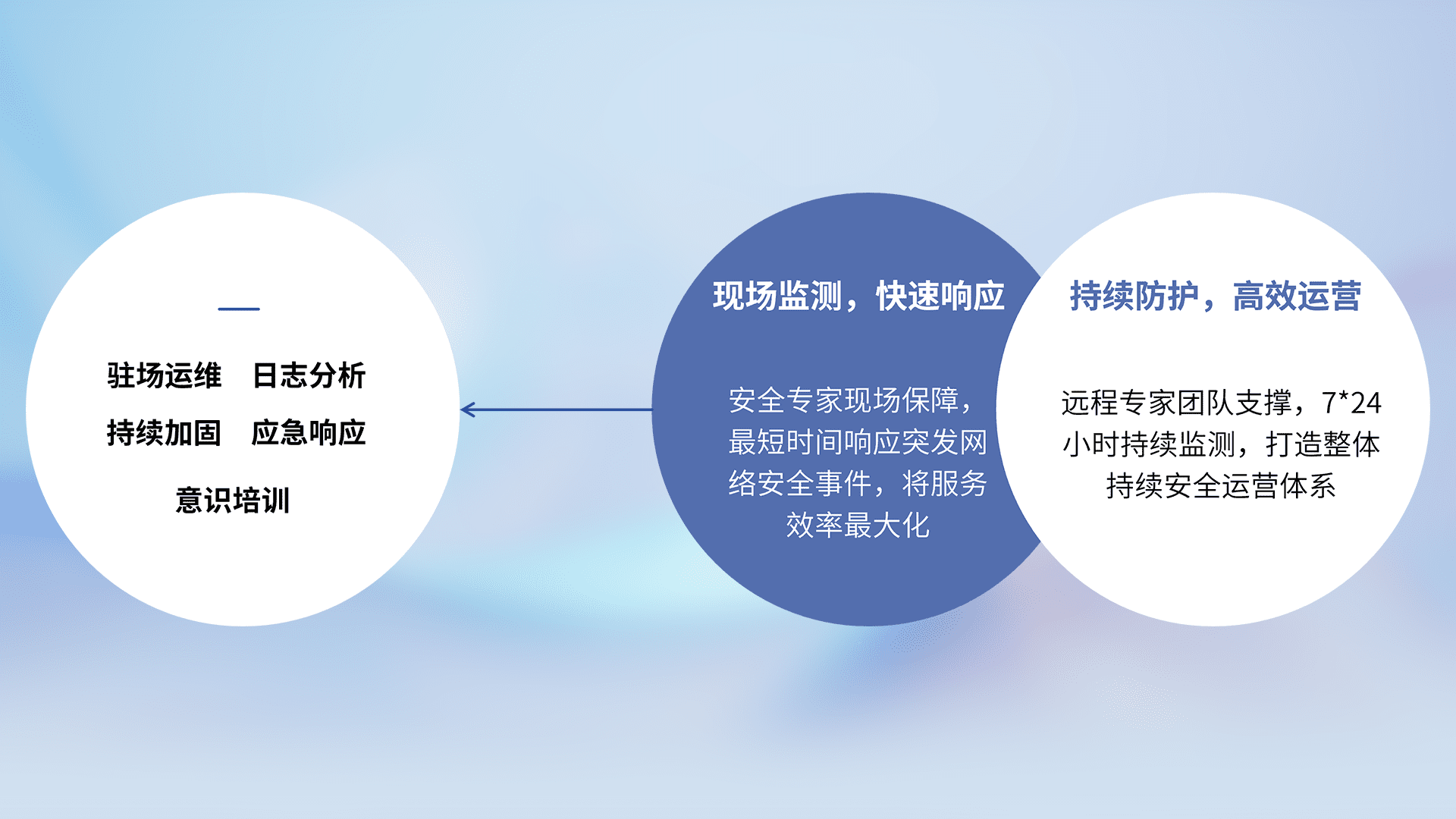 7X24小时持续监测安全事件,保持安全策略有效性,降低资产脆弱性风险,,精准拦截黑客攻击,,,减少被黑客利用的机会,,第一时间遏制,,降低损失。。。